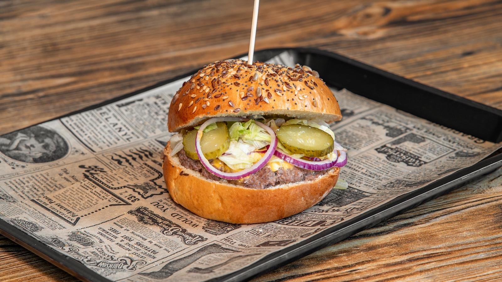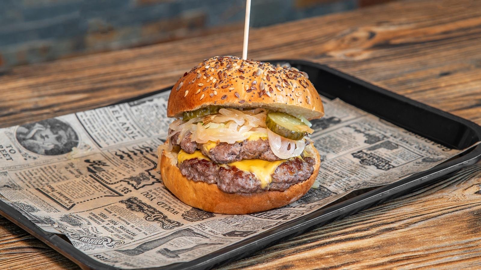 Steak haché 80gr x2,cheddar,oignons rouge, cornichons,sauce burger