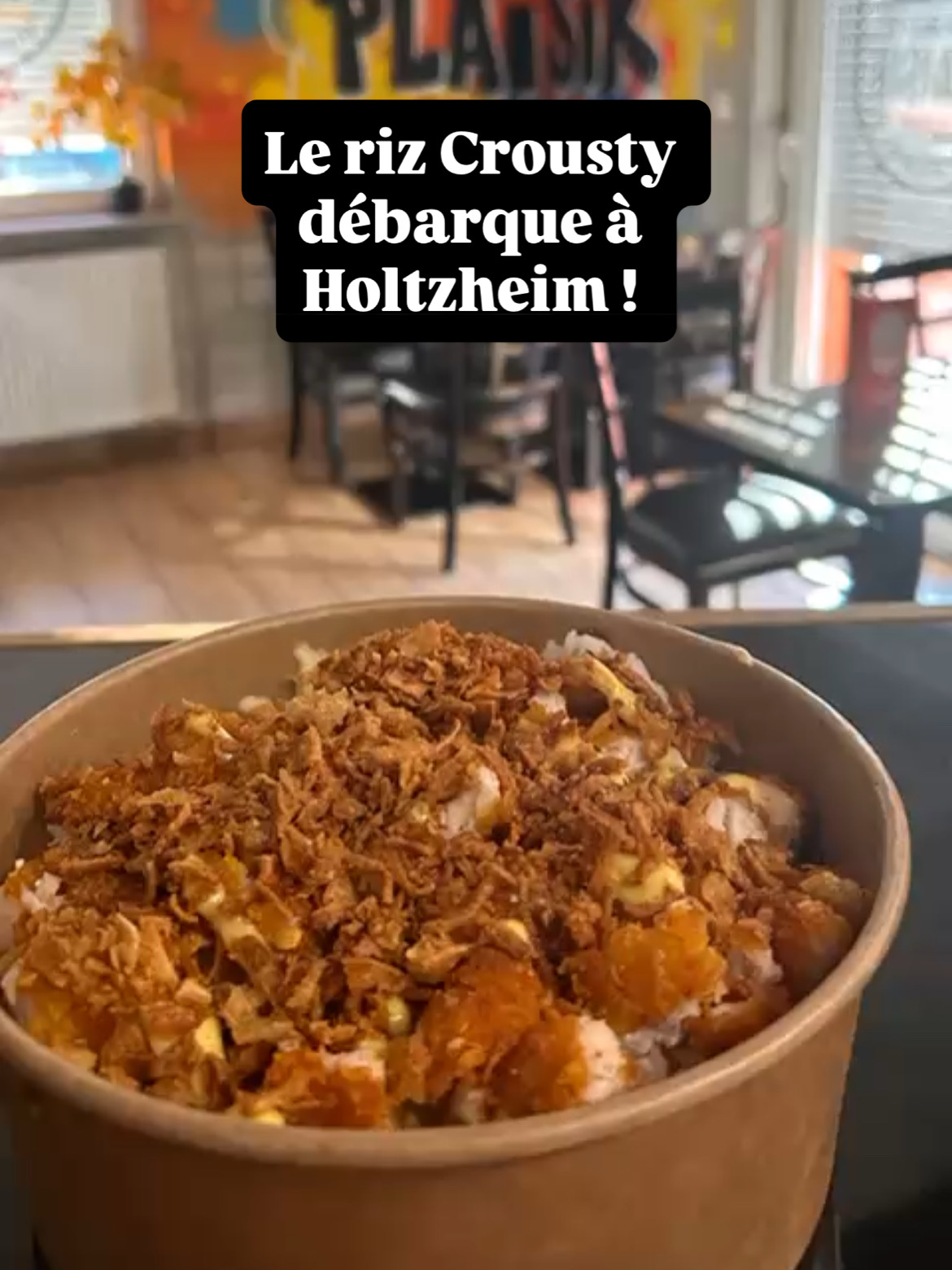 Riz savoureux, tenders ultra croustillant, double sauce (fromagère+ sauce crousty), oignons frits et persil frais.